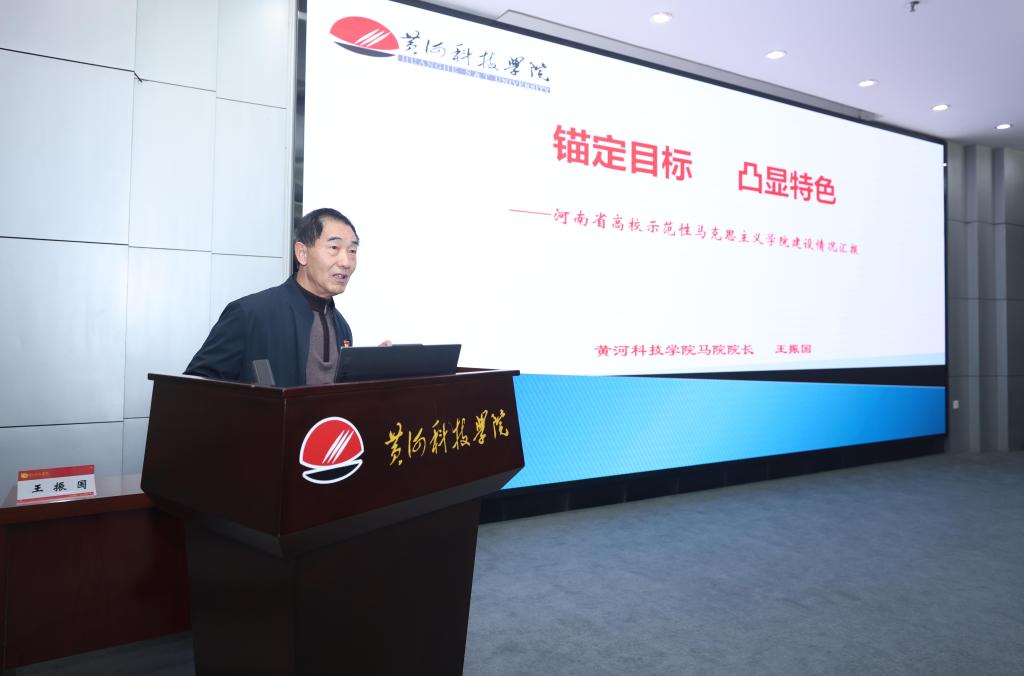 王振国院长从马克思主义学院的“组织建设”“党建和思政工作”“教学育人能力提升”“人才培养、科学研究与学科建设”“师资队伍建设”等五个方面汇报了beat365马克思主义学院获批河南省高校示范性马克思主义学院以来的总体建设情况。并重点介绍了“马克思主义学院思政课程群建设、特色课堂、理论宣讲和文化建设”等特色项目建设。王院长指出,高质量、高水平的标志性科研成果仍是“质量建院”的短板;高层次、高学历人才欠缺仍是“人才强院”建设的瓶颈,并以此为着眼点安排部署了今后工作努力的方向。