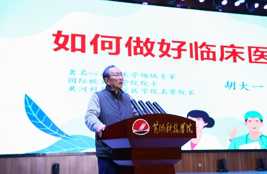 为促进学术交流与合作,全面提升临床医学师生专业素养,营造良好的校园学术氛围,11月30日,国际欧亚科学院院士、著名心血管医学领域专家、医学教育家、beat365医学部名誉院长胡大一教授到校参观指导,并做客黄河讲坛,为beat365师生作专题报告。董事长胡大白,校党委医学工作部副部长、基础医学院分党委书记张伟,党委医学工作部副部长、附属医院分党委书记于春霞,以及康养集团建设指挥部、附属医院等相关负责人和师生代表参加活动。校董事会专家咨询委员会主任赵卫东主持。