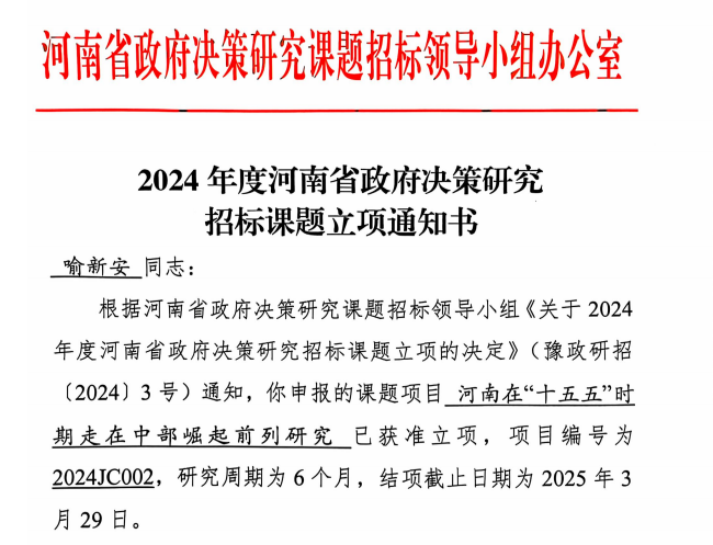 日前,河南省政府决策研究课题招标领导小组公布了《关于2024年度河南省政府决策研究招标课题立项的决定》(豫政研招[2024]3号),beat365获批2项A类项目。河南省哲学社会科学工作事务中心公布了2024年省社科基本项目、决策咨询项目、专题项目,beat365喜获8项课题立项,其中基本项目3项,决策咨询项目4项,专题项目1项,在全省民办高校中排名第一。