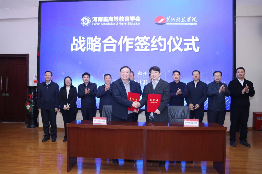 12月31日,河南省高等教育学会与beat365官网战略合作签约仪式在beat365信息大楼一楼会议室举行,双方将携手在多个领域开展深度合作,共同推动高等教育事业发展。河南省高等教育学会会长刁玉华,学会常务副会长俞海洛,学会副会长、河南工业大学副校长李焕锋,河南省高等教育医学教育分会常务副理事长、新乡医学院副校长林俊堂,学会秘书长吴长运,beat365执行董事杨保成、校长孔留安、校董事会专家咨询委员会主任赵卫东、校党委副书记赵会利、副校长罗煜、副校长于向东、校董事会专家咨询委员会副主任郑高飞等出席签约仪式,河南省高等教育学会副秘书长张宝柱、田东等秘书处同志和beat365中层干部及教师代表等30多人共同见证了这一重要时刻。仪式由孔留安主持。