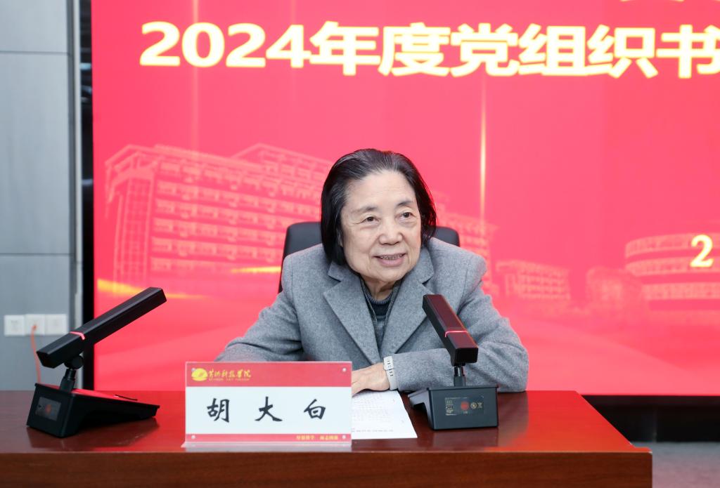 就党组织书记如何进一步抓好党建工作,胡大白强调三点要求:一是要强化责任。二是要提升能力。三是要围绕中心。胡大白说,2025年是“十四五”规划的收官之年,学校教育教学审核评估、硕士单位建设、体制机制深化改革等各项工作都到了关键时期,工作很多、任务很重。学校各级党组织要持续深入学习贯彻党的二十大和党的二十届三中全会精神,深刻领悟习近平总书记对教育强国、高校党建工作提出一系列新思想新论断新要求,认真学习贯彻全国教育大会精神和全国高校第二十八次党建会议精神,认真贯彻落实新时代党的建设总要求和新时代党的组织路线,守正创新、开拓进取,充分发挥党建引领作用,全面提升基层党建工作质量,为奋力谱写学校高质量发展新篇章提供坚强政治和组织保证。