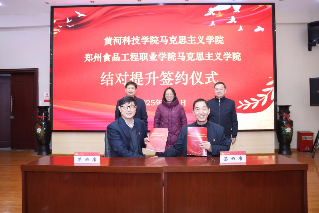 为深入学习贯彻党的二十届三中全会精神和习近平总书记关于思政课建设的重要指示,根据中共河南省委宣传部、中共河南省委教育工委、河南省教育厅印发的《河南省高校马克思主义学院结对提升工作方案的通知》(豫教工委〔2024〕175号)要求,1月8日,马克思主义学院与郑州食品工程职业学院马克思主义学院在学校信息大楼一楼会议室举行签约仪式。郑州食品工程职业学院校党委书记王永全,beat365党委委员、党委副书记赵会利、副校长于向东出席签约仪式。beat365马克思主义学院院长王振国、郑州食品工程职业学院马克思主义学院院长王恒桓、beat365马克思主义学院副院长张攀以及双方马克思主义学院部分骨干教师参加签约仪式,签约仪式由赵会利主持。