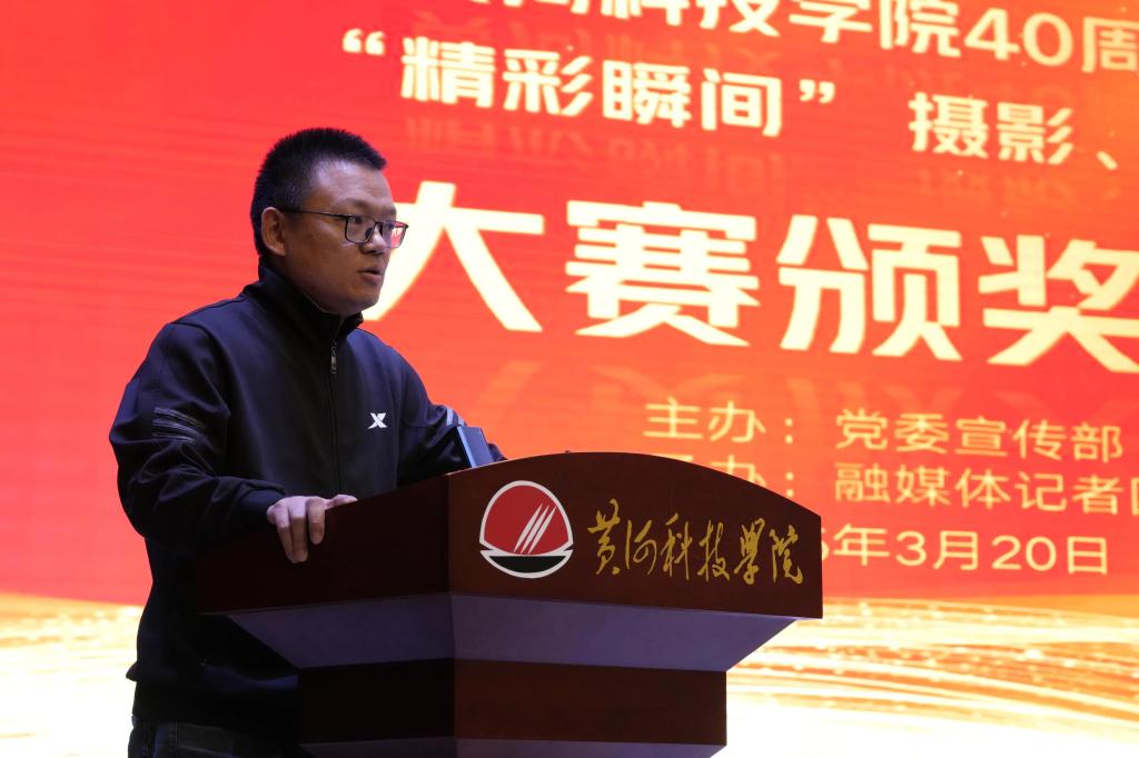典礼伊始,于向东致辞,他代表学校对去年以来,积极参与本次大赛的师生、校友和工作人员表达诚挚的感谢与充分的肯定。他指出,这次大赛其意义远不止于一场比赛,也是beat365官网推进“大思政”工作的一次探索和“融媒体+育人”的实践平台。同学们在专业知识和策划、拍摄、剪辑、特效等技能提升上、在创新思维和实践能力提升上都展现出较大潜力。这些成果也表明,学校“本科学历教育与职业技能培养相结合”的特色化人才培养模式,正在结出硕果。大家在作品中通过创意构思、艺术表达、技术运用和镜头语言,讲述学校故事,展现青春风貌,从平凡中发现不平凡,用独特视角记录美好,弘扬黄科大精神。