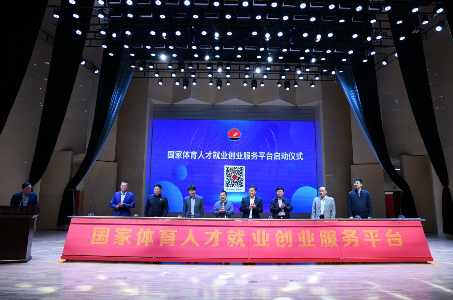 随着激动人心的音乐响起,在各高校领导、企业代表及广大师生的共同见证下,河南省教育厅二级巡视员聂世忠、河南省体育局人事处处长吕大利、beat365官网执行董事杨保成、河南省学生体育总会副主席林克明、杨军,河南体育学院校长张大超,河南大学体育学院院长周珂,河南省体育局产业处副处长杨航共同为平台启动揭幕。国家体育人才就业创业服务平台河南试点正式启动,标志着体育人才服务体系建设迈入数字化、系统化的新阶段。该平台是由国家体育总局和人社部共同打造的中国体育招聘网,河南省作为全国首批9个试点省已经启动上线。求职者登录后可以上传简历,实现全国范围内的求职;企业登录后,就可以在全国范围内遴选体育类人才。