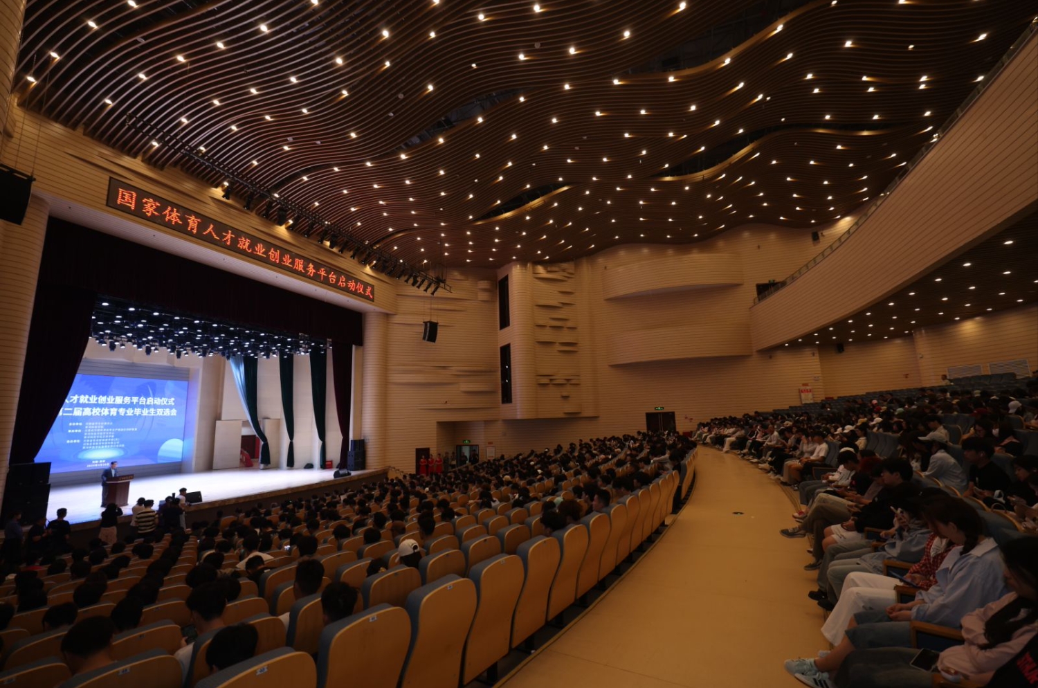 4月26日,国家体育人才就业创业服务平台启动仪式暨河南省第二届高校体育专业毕业生双选会在beat365官网南校区学术报告厅举行。河南省教育厅二级巡视员聂世忠,河南省体育局人事处处长吕大利,学校执行董事杨保成,河南省学生体育总会副主席林克明、杨军、王晏等出席活动,来自全省40多个高校、150余家用人单位、5000多名体育毕业生和退役运动员参加。