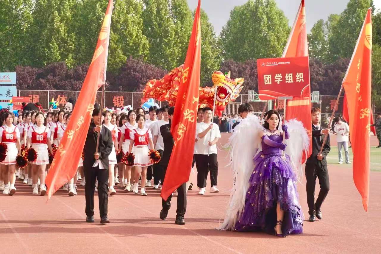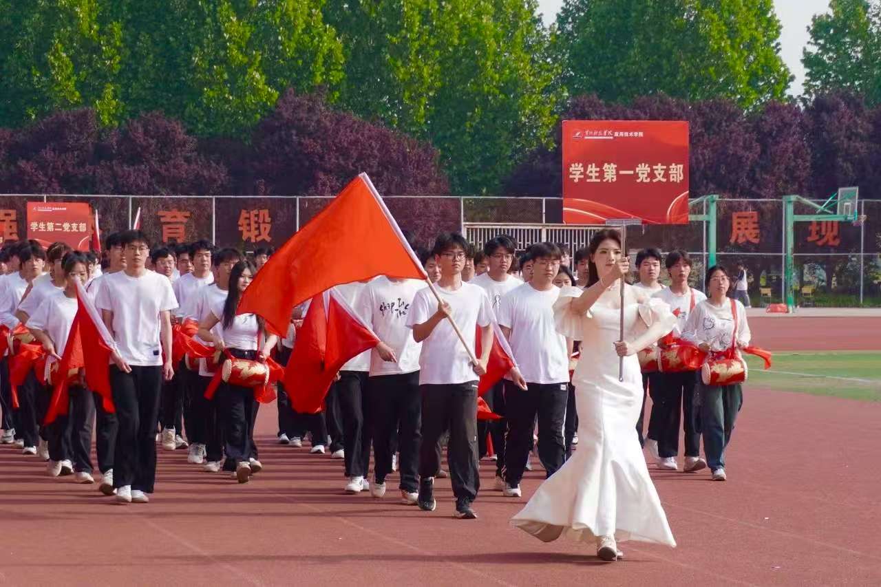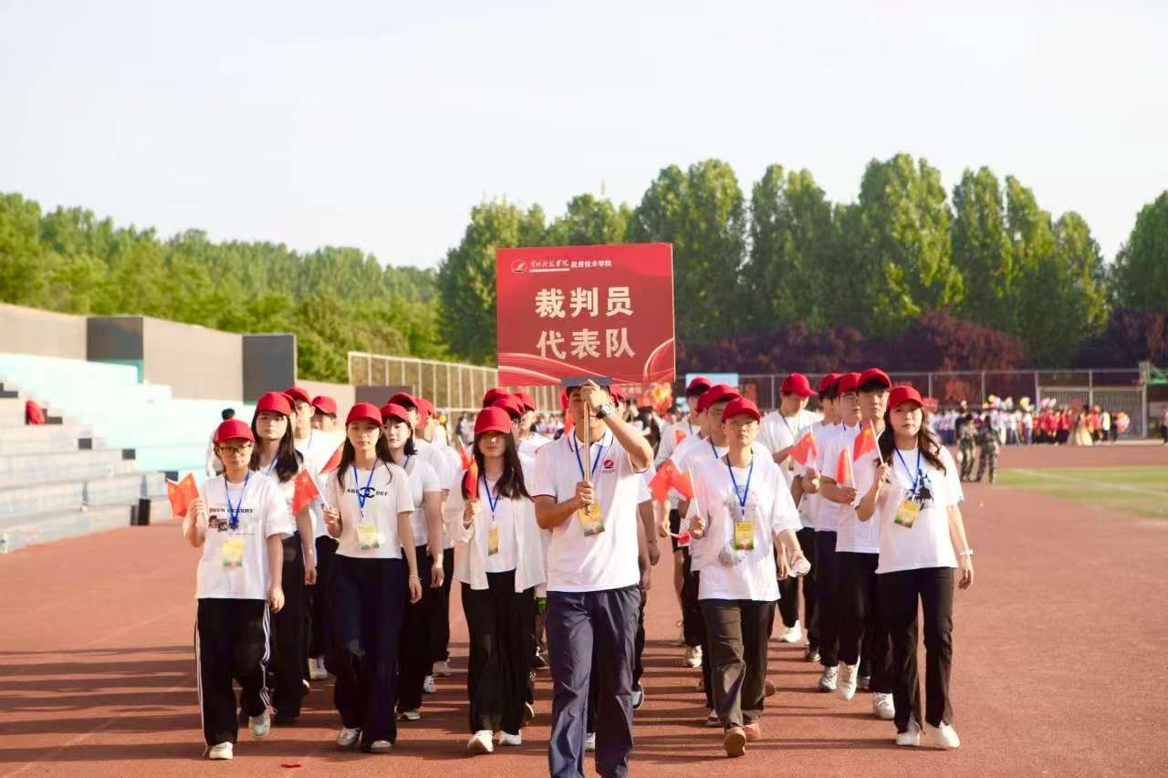 为深入贯彻习近平总书记“树立健康第一的教育理念”,积极响应国家对青少年体育教育的号召,弘扬黄科大“强国强身、崇尚文化、注重体育、健康向上”的优良传统,4月27日上午8时30分,beat365官网应用技术学院第十届春季运动会在学院操场正式开幕。校院领导、师生代表及全体运动员、裁判员齐聚绿茵场,开幕式由学院党委副书记高德峰主持。