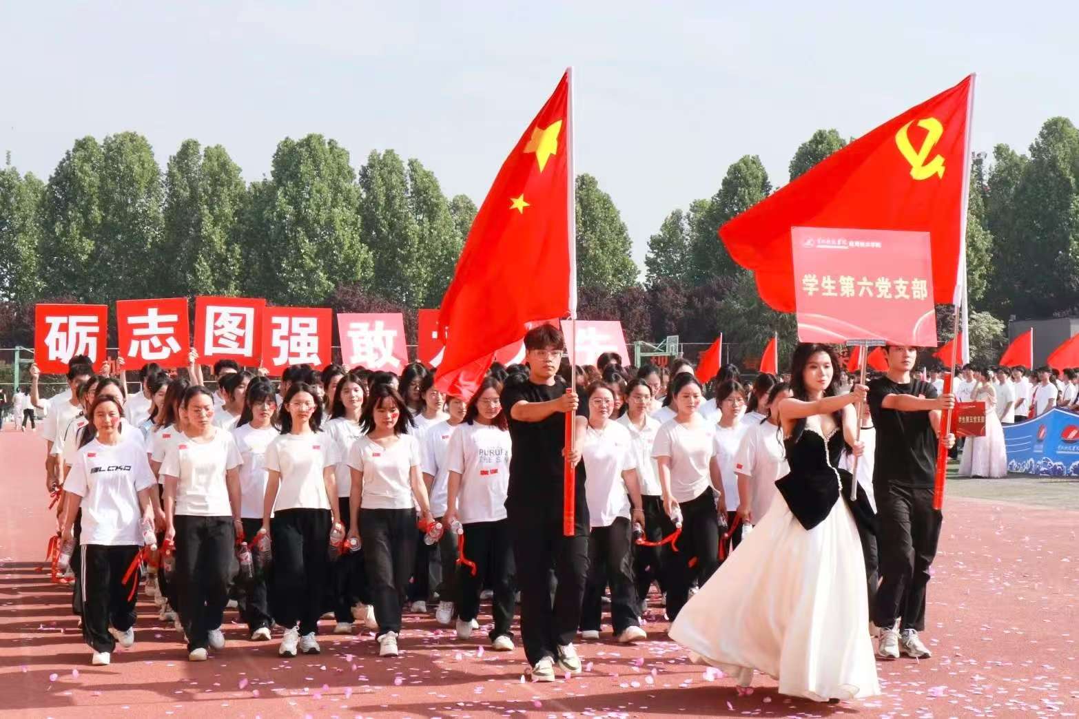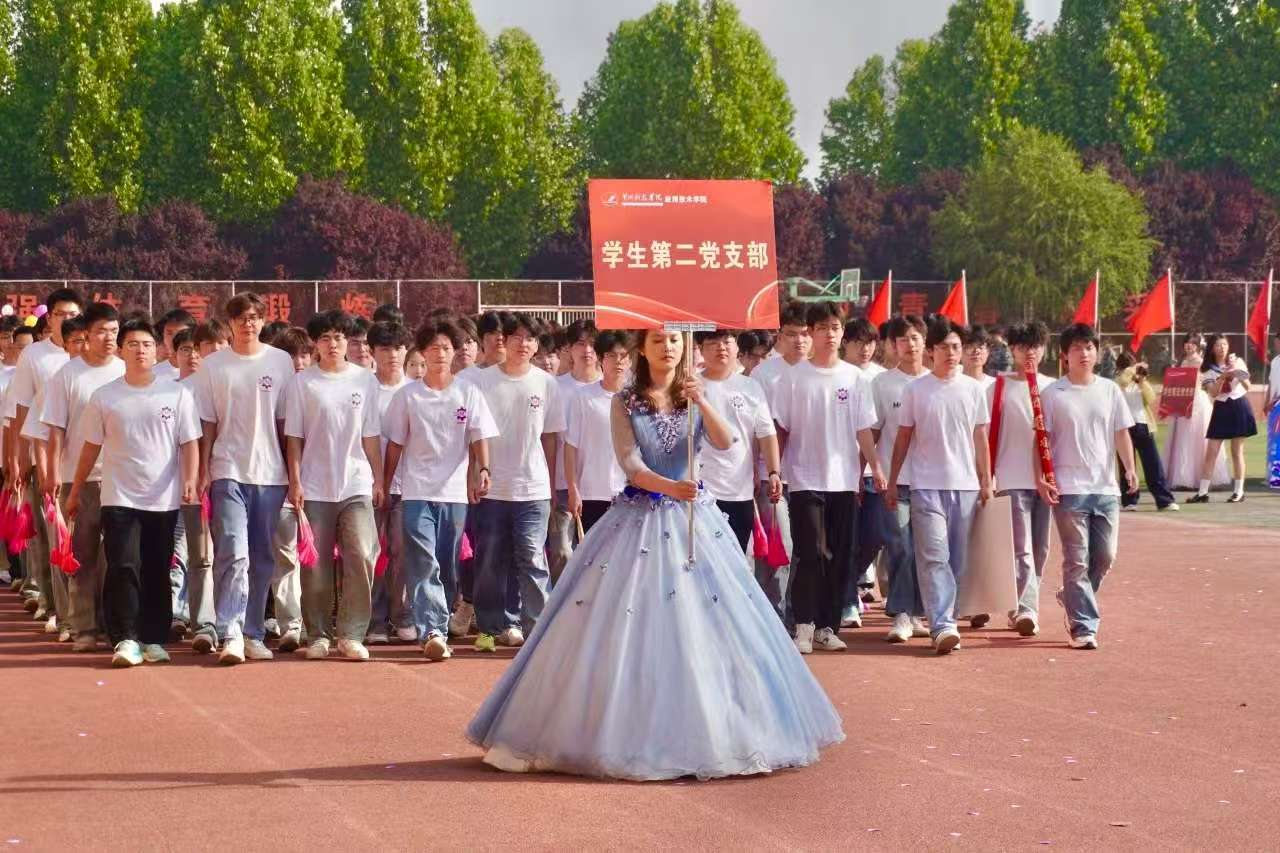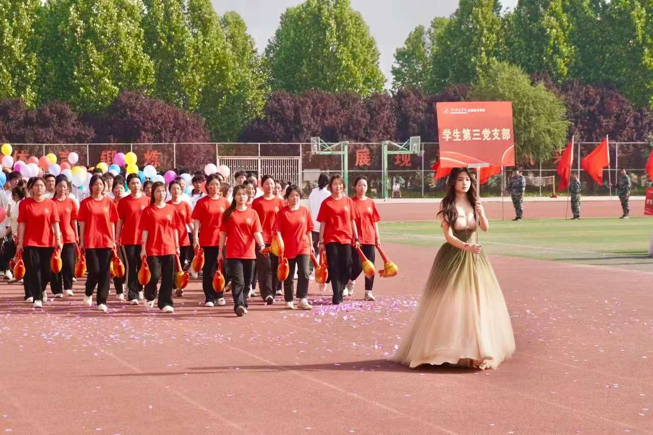 为深入贯彻习近平总书记“树立健康第一的教育理念”,积极响应国家对青少年体育教育的号召,弘扬黄科大“强国强身、崇尚文化、注重体育、健康向上”的优良传统,4月27日上午8时30分,beat365官网应用技术学院第十届春季运动会在学院操场正式开幕。校院领导、师生代表及全体运动员、裁判员齐聚绿茵场,开幕式由学院党委副书记高德峰主持。
