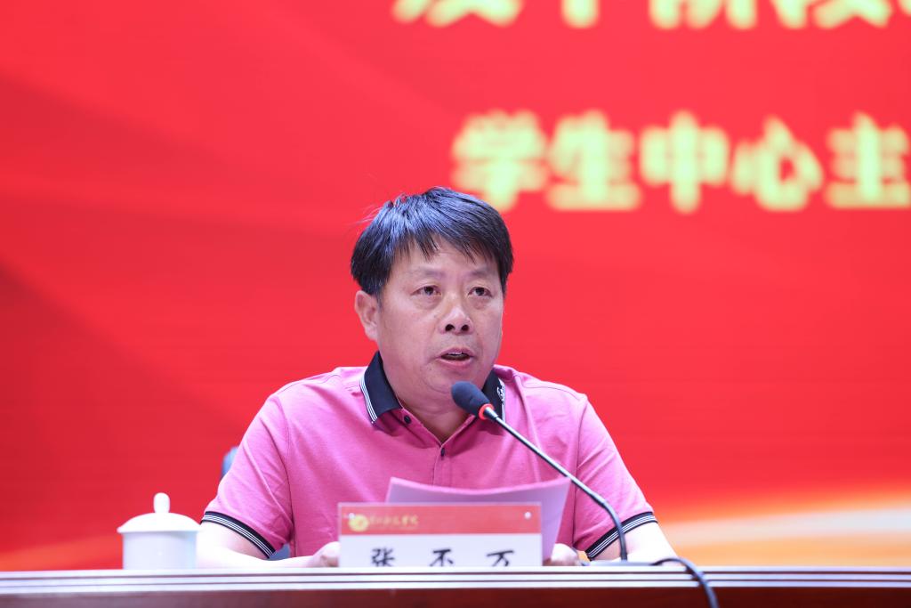 执行董事杨保成讲话。他首先向取得优异成绩的院部和学生表示祝贺,向为学生成长付出不懈努力的教师致以崇高敬意。杨保成说,创建一流应用科技大学要有一流的人才培养质量,一流的社会认可度和影响力,学生考研录取率是衡量学校人才培养质量的重要指标,抓就业、抓考研是践行对学生最负责任初心使命的应有之义,也是坚持本科教育中心地位的必然选择。