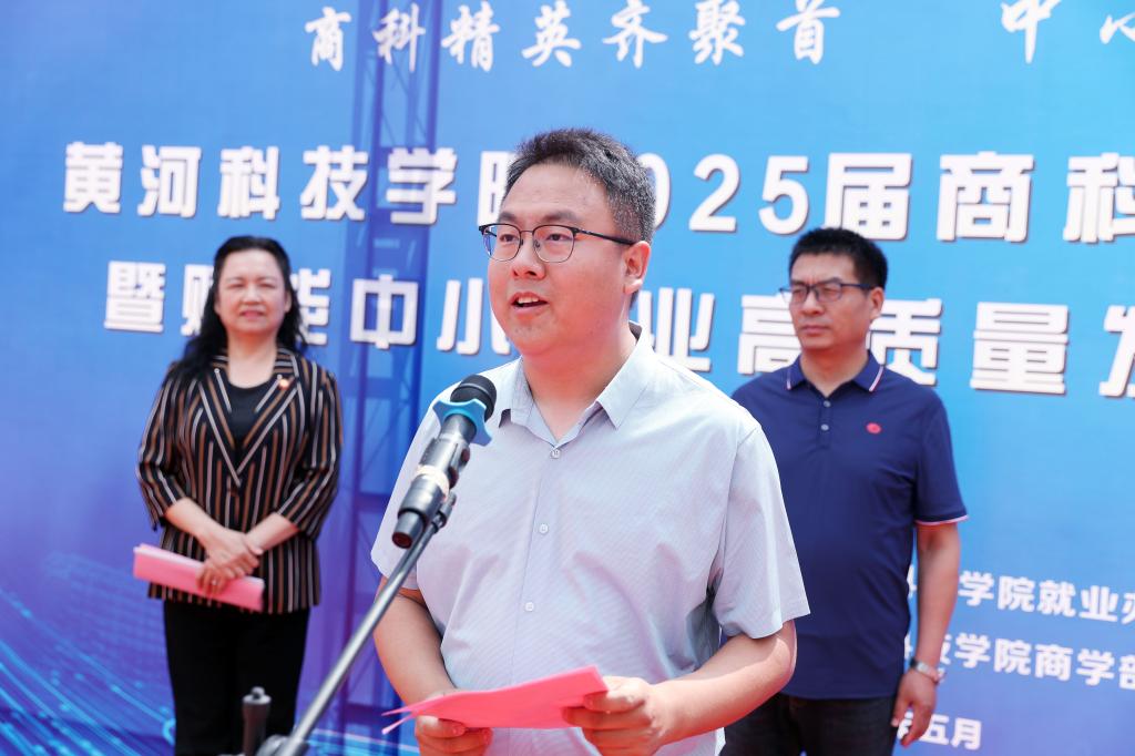 产教融合启新篇,力促校企深度合作。开幕式上,王晓梅致辞,她指出商学部搭建的郑州市中小企业公共服务示范平台期待与更多企业携手发挥更大的优势和作用,让课堂成为企业的“人才库”,让企业成为高校的“试验田”。她希望本次双选会与更多企业结成“发展共同体”,让beat365毕业生成为企业创新的“生力军”,让企业的需求成为学部改革的“指南针”。荣教聚联河南网络科技有限公司副总经理杜为天作为企业代表发言。他高度认可了商学部为中小企业输送的优质人才。他说,未来,协会的各企业单位将会和beat365官网开展更深层次的合作,推动毕业生服务区域经济发展。郑月宣布beat365官网2025届商科类毕业生双选会暨赋能中小企业高质量发展人才洽谈会正式开幕。郑月指出本次双选会不仅是毕业生步入社会的关键期,也是学校深化产教融合了解市场需求的重要途径,助力学校优化人才培养,并祝愿同学们带着知识和能力在双选会中开启更加美好灿烂的前程。
