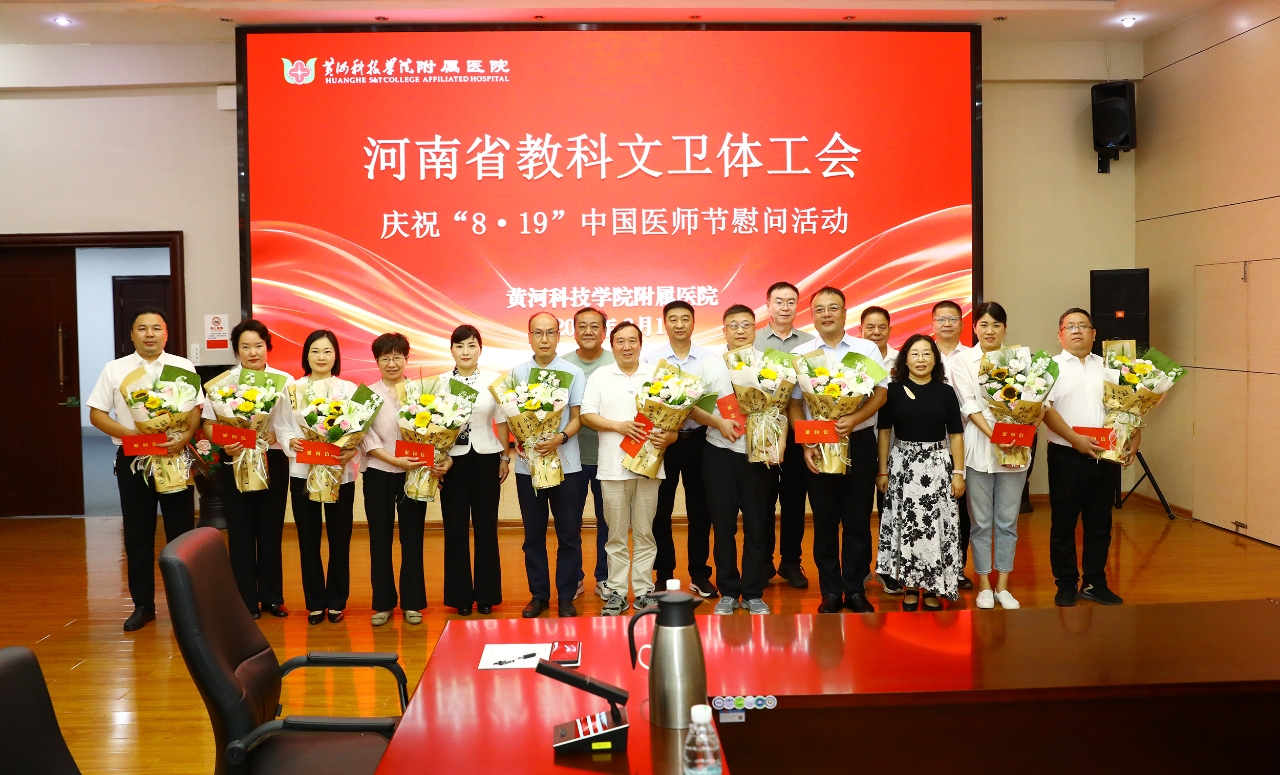 在第八个“中国医师节”来临之际,河南省教科文卫体工会张学勇主席一行深入beat365官网附属医院,亲切慰问奋战在一线的医师们,向他们致以崇高的敬意和节日的祝福。今年医师节的主题是“德馨于行,技精于勤”,河南省教科文卫体工会的此次慰问活动,正是对这一主题的生动践行。beat365党委委员、校工会主席陈勇民,党委委员、统战部部长、工会副主席董晓辉,党委医学工作部部长、附属医院理事长李喜强,党委医学工作部副部长、附属医院党委书记、分工会主席于春霞等领导陪同慰问并参加活动。活动由董晓辉主持。