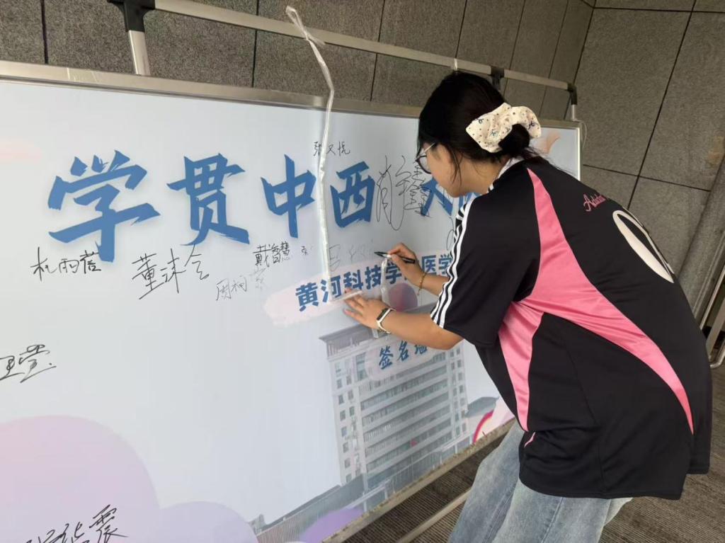 医学部举办了“新生首秀” 活动,组织新生晒出与录取通知书的合影,写下对自己未来的寄语,并设置签名墙,让新生留下专属印记。