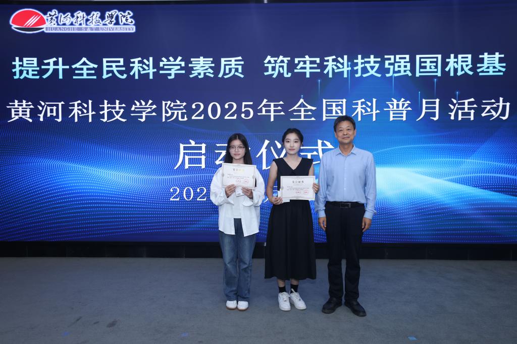 张晓兵宣布了2025年河南省、郑州市科普讲解大赛及“点赞2024科普中原”年度十大科普作品获奖名单,并为获奖学生颁奖。