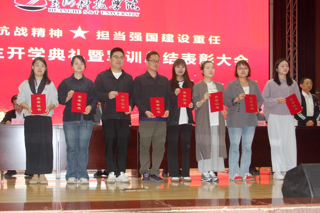 随后,与会领导为军训与入学教育先进工作单位、先进工作者、优秀教官、优秀学院代表颁发证书。值得注意的是,学院为2025级物理类、历史类新生录取分数前三名的同学颁发“启航奖”,以此激励新生们在未来的学习中勤奋刻苦、勇攀高峰。颁奖结束后,校领导为新生代表佩戴校徽,标志着2025级新生正式成为黄科大大家庭的一员。
