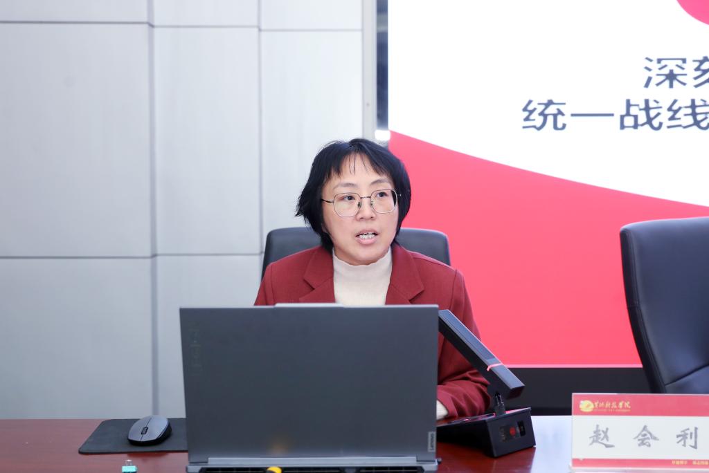 赵会利以“筑牢统战根基汇聚发展合力”为题,为全体参会人员带来了一场内容丰富、思想深刻的专题辅导。她从统一战线在党的百年奋斗历程中的法宝作用切入,系统阐述了统一战线的重要意义和时代内涵,深入领学了习近平总书记关于做好新时代党的统一战线工作的重要思想。