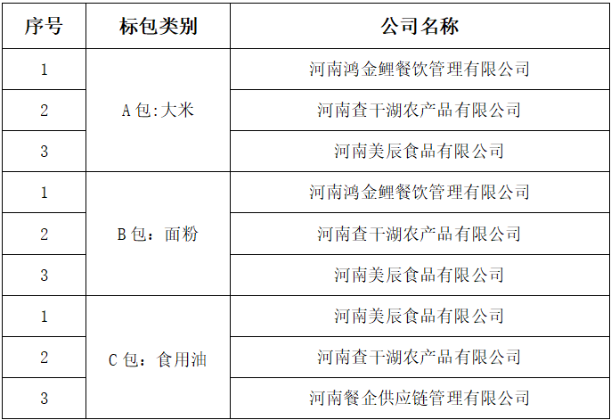 beat365对“2025-001号餐厅米面油类食材招标采购项目”面向社会公开招标。在校纪委的监督下,经过资源保障部、后勤服务部、财务中心、师生代表、档口代表的共同评定,拟确定学生餐厅原材料采购供应商,名单公示如下表。