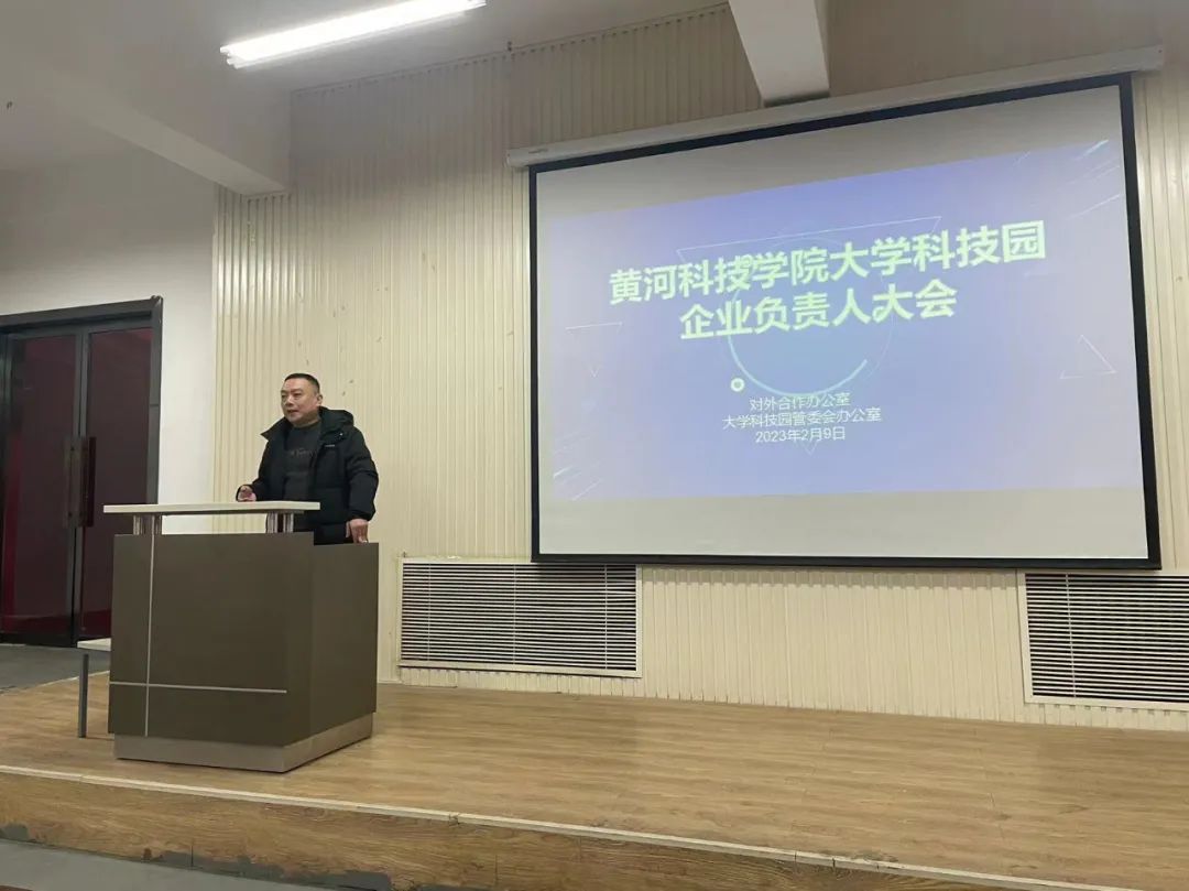 张晓兵首先传达了学校中层干部专题研讨班的重要精神及学校2023年度重点工作任务。他指出,今年是全面贯彻落实党的二十大精神的开局之年,也是学校全面深化改革的关键之年,各园区企业要进一步强化思想认识,提高政治站位,紧紧围绕深入学习贯彻党的二十大精神这条主线,压实工作责任、细化工作举措、勇于担当、加快发展,切实推动学校中心工作与企业的高速发展同频共振、互促双赢。