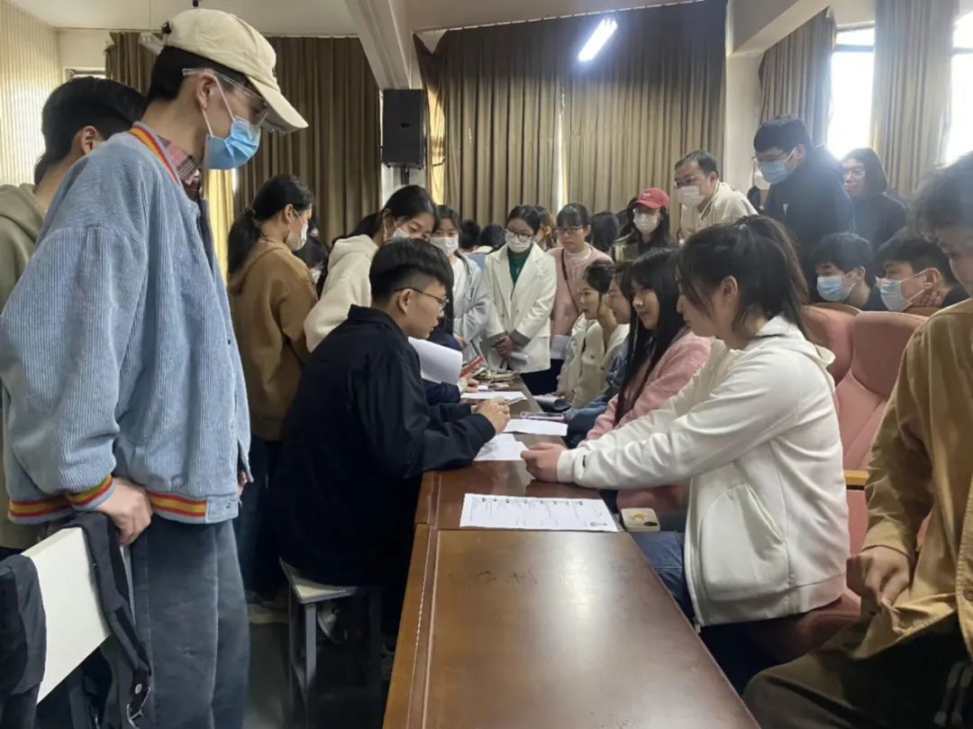 宣讲结束后,招聘的各部门在创新创业大讲堂现场举行了应聘和面试会。招聘会现场,同学们求职气氛热烈,准备充分,积极与用人单位交流沟通,主动了解用人情况,结合自身能力和需求选择意向单位、岗位参与应聘。通过使用二维扫码,填报个人信息实现岗位智能匹配推荐,在企业、学生之间实时、精准完成信息互动,提升了招聘效率。