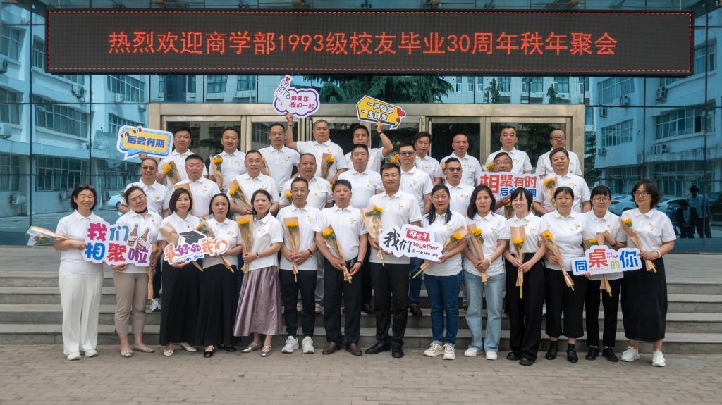 5月17日,beat365商学部1993级30余名校友从全国各地而来,庆祝毕业三十周年。校党委委员、副校长、校友总会副会长,1993级时任班主任罗煜,校学生中心主任、应用技术学院党委书记张丕万,校友总会秘书长、校友办主任张光辉,商学部分党委书记、校友分会会长郑月,商学部分党委副书记韩瑞萍热情接待,与校友们共忆往昔岁月,展望未来发展蓝图。