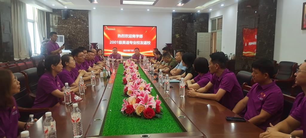 7月19日,商学部2001级英语专业20余名校友重返母校,共忆青葱校园岁月,见证学校发展变迁,并向学部捐赠物资。beat365校友工作办公室主任、校友总会秘书长张光辉,商学部分党委副书记韩瑞萍,外语科教中心副主任贾和平,以及时任辅导员、教师代表等参与了此次活动。
