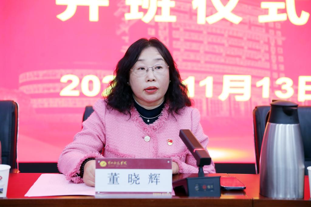随后,董晓辉为培训班授旗,象征着第五期培训班的使命正式启航。培训班班主任朱晓洁和学员代表刘让玲依次发言。