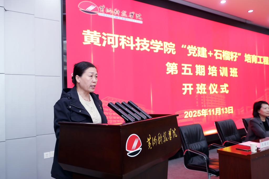董晓辉总结讲话,她指出,“党建+石榴籽”工程自2019年启动以来,成功培养了一批厚植家国情怀、勇担时代使命的优秀学子,他们奔赴祖国各地建功立业,播撒团结与奋斗的种子,用实际行动诠释了黄科大人的责任与担当。她强调,新一期学员要争做“知”的探寻者,在文明溯源中坚定文化自信;争做“行”的实践者,在团结协作中深化民族情谊;争做“心”的凝聚者,在情感共鸣中铸牢共同体意识。