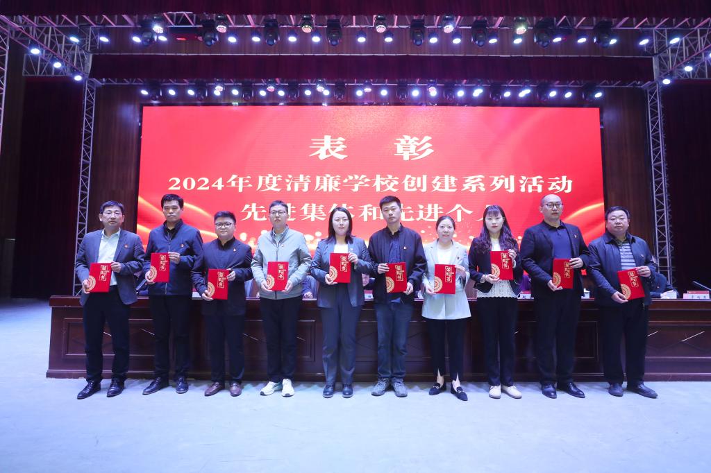 会上,各基层党组织代表向校党委递交《2025年度党风廉政建设责任书》,机关党委代表宣读《党员干部守纪律强作风倡议书》。会上还对清廉学校创建系列活动先进集体和先进个人进行表彰。