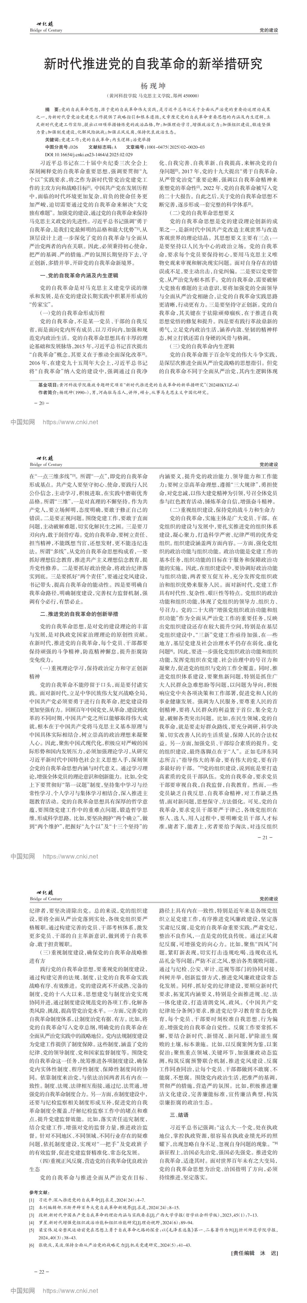 廉政专题研究 | 杨现坤《新时代推进党的自我革命的新举措研究》