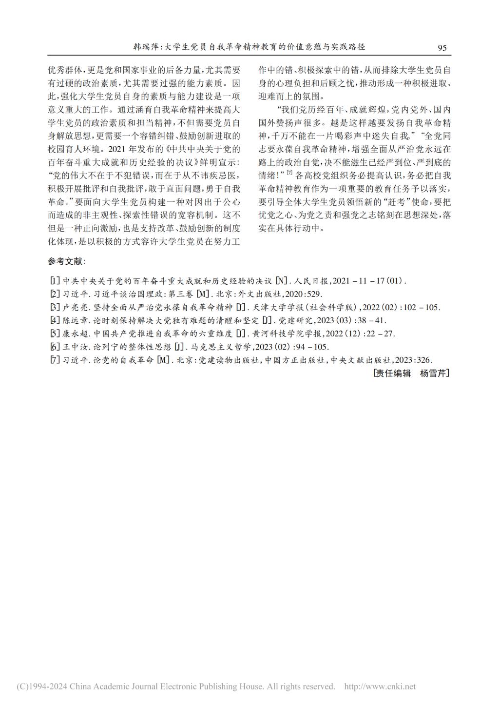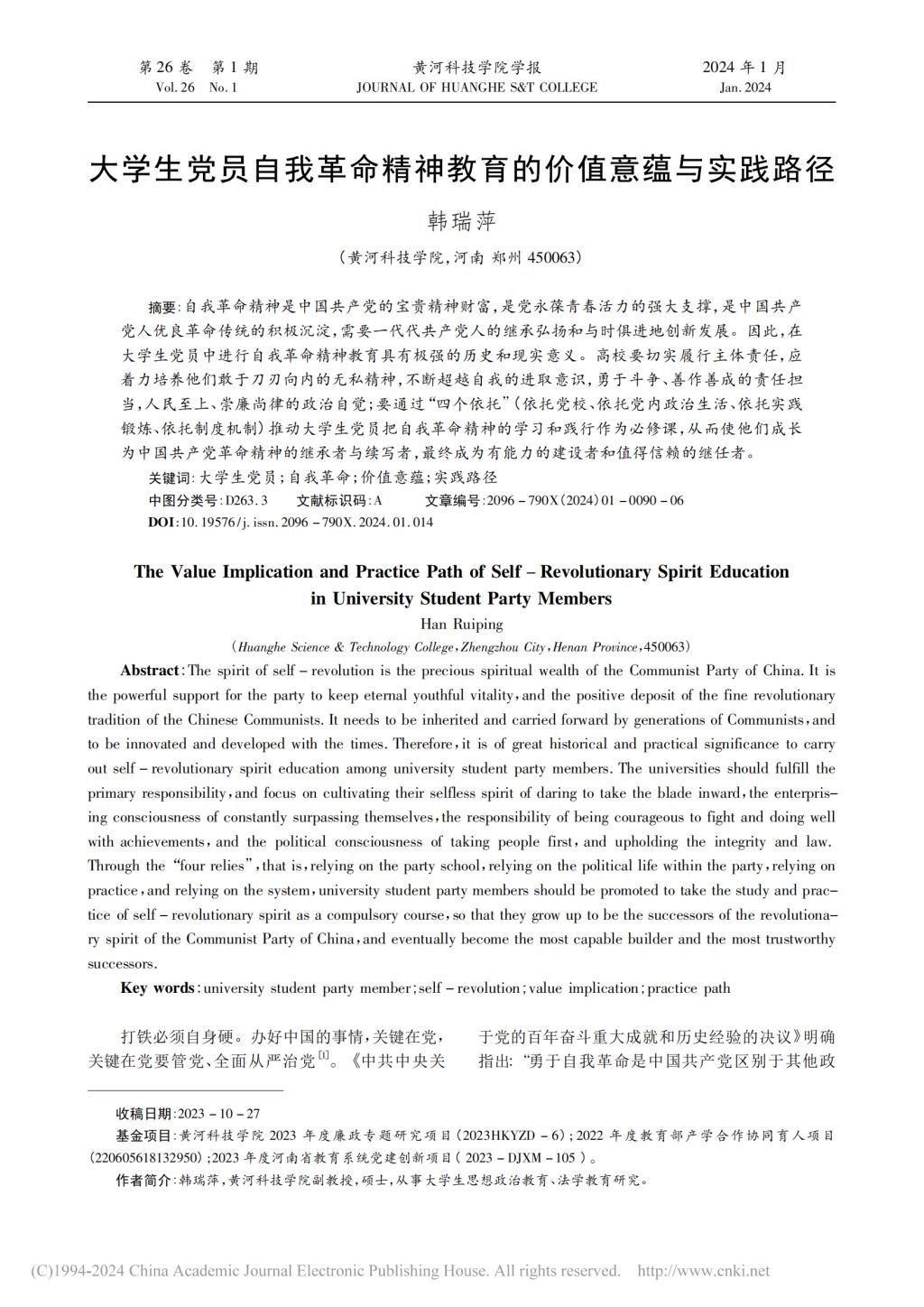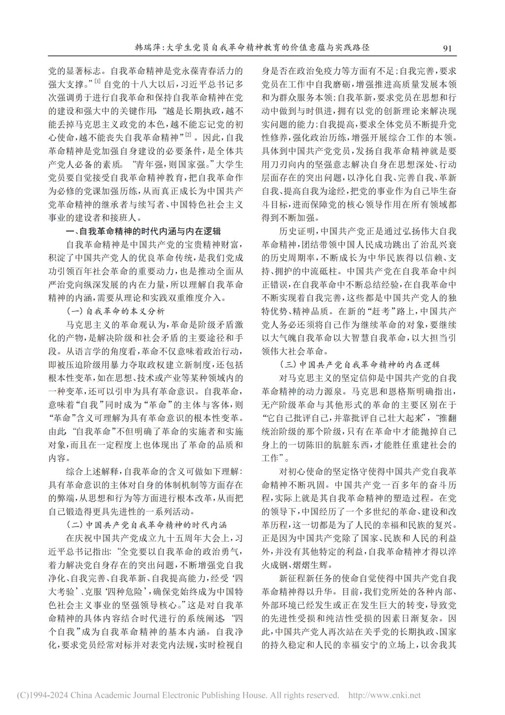 廉政专题研究 | 韩瑞萍《大学生党员自我革命精神教育的价值意蕴与实践路径》