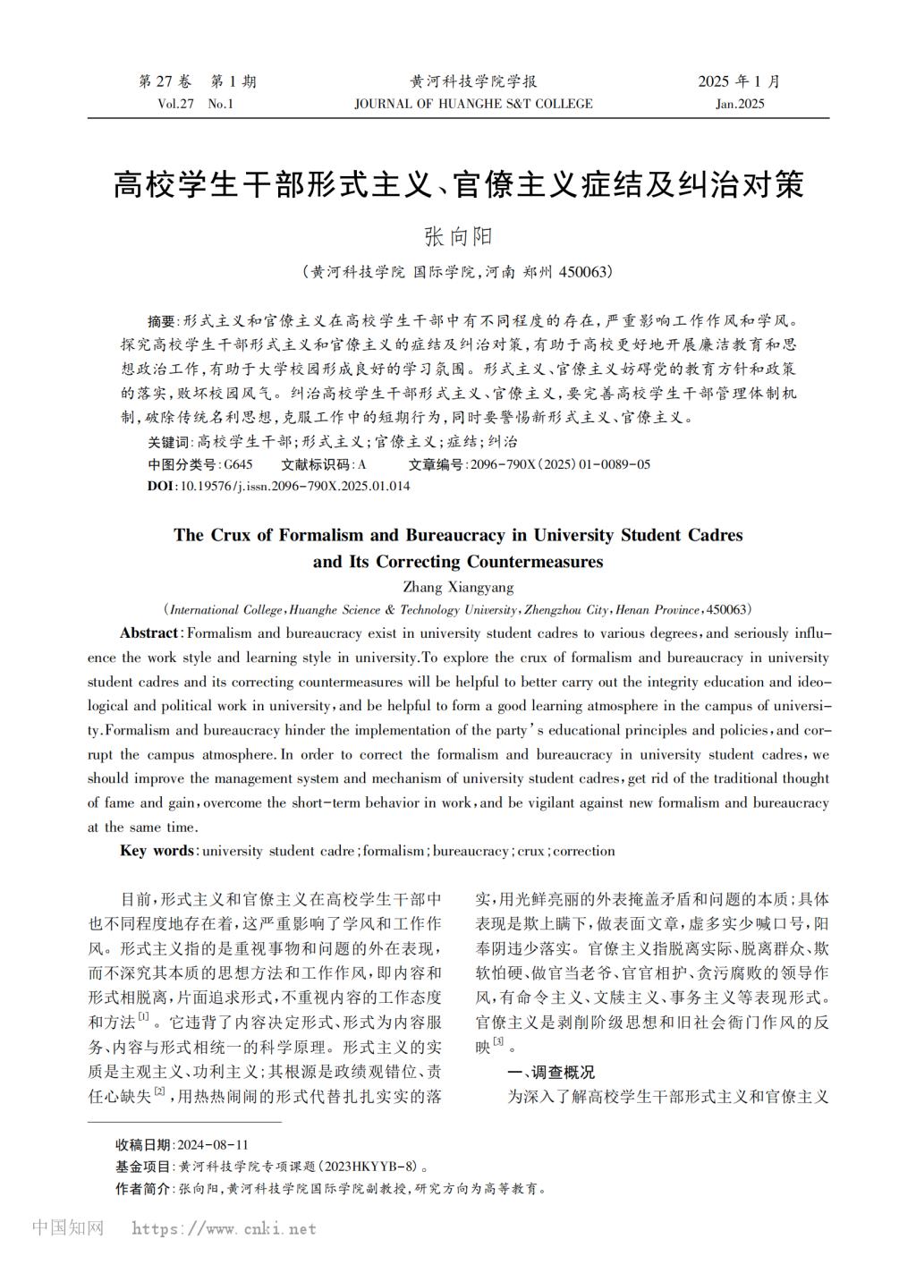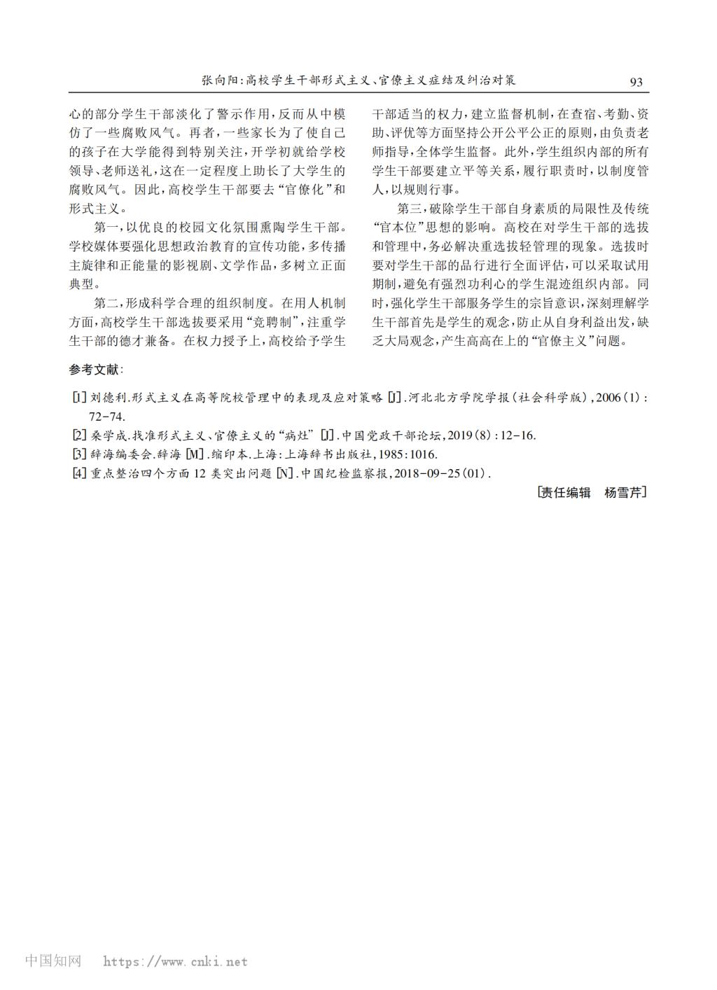 廉政专题研究 | 张向阳《高校学生干部形式主义、官僚主义症结及纠治对策》