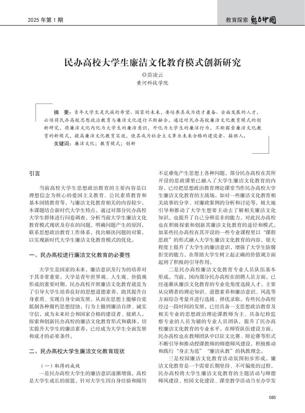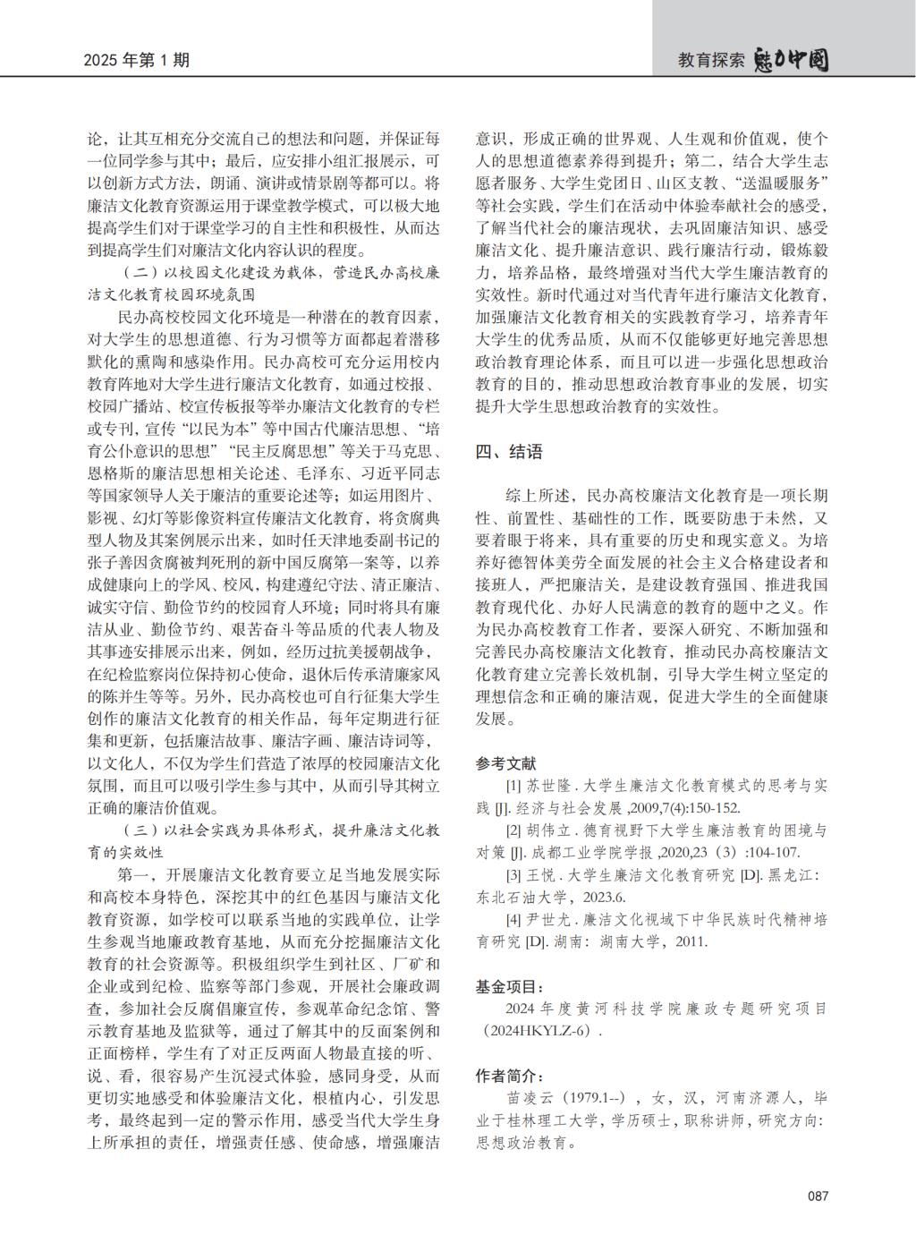 廉政专题研究 | 苗凌云 《民办高校大学生廉洁文化教育模式创新研究》