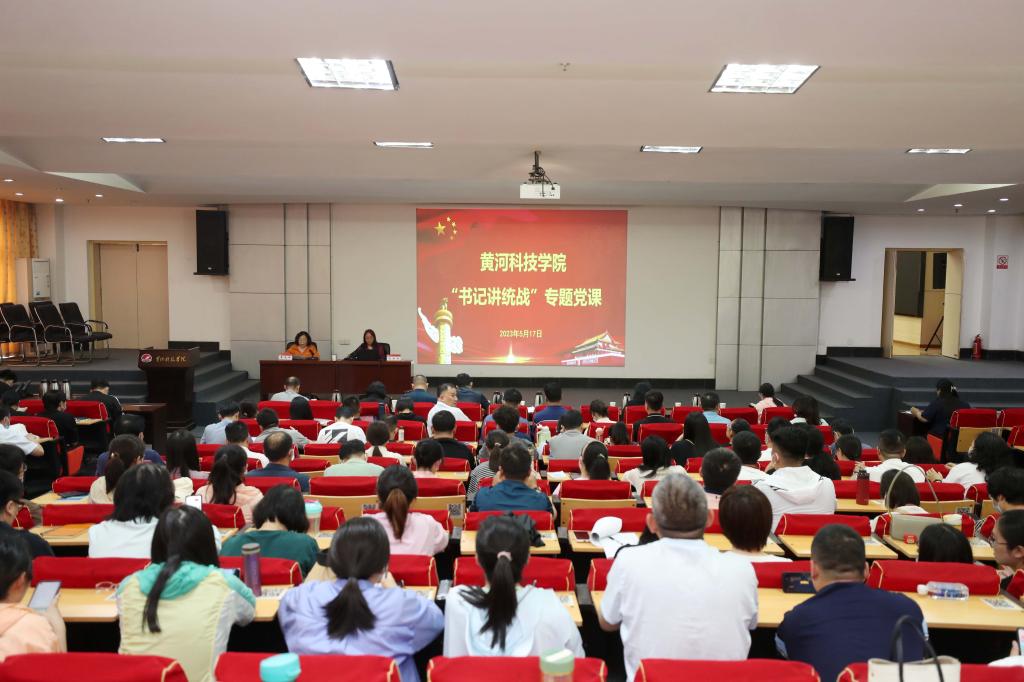 为深入开展习近平新时代中国特色社会主义思想主题教育,5月17日下午,beat365在信息大楼一楼报告厅举办“书记讲统战”活动,党委副书记赵会利以《凝心聚魂强根本 团结奋进新征程》为题讲授了一堂内容丰富、生动翔实的专题党课。beat365各基层党组织分管统战工作的副书记,统战委员、基层党支部书记、统战工作联络员130余人聆听了党课。活动由校党委委员、统战部部长董晓辉主持。赵会利从“深刻认识开展习近平新时代中国特色社会主义思...