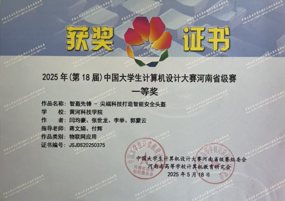 近日,2025(第18届)中国大学生计算机设计大赛河南省级赛在河南牧业经济学院(英才校区)和郑州工程技术学院(金河校区)举行。工学部闫均豪团队的《智盔先锋——尖端科技打造智能安全头盔》斩获一等奖,王艺瑾团队的《绿色分类星球——基于微信小程序的垃圾分类环保系统》荣获二等奖,另有6个团队作品获三等奖。本次大赛由中国大学生计算机设计大赛河南省级赛组织委员会等联合主办,吸引了全省72所本专科院校参赛,共收到931...