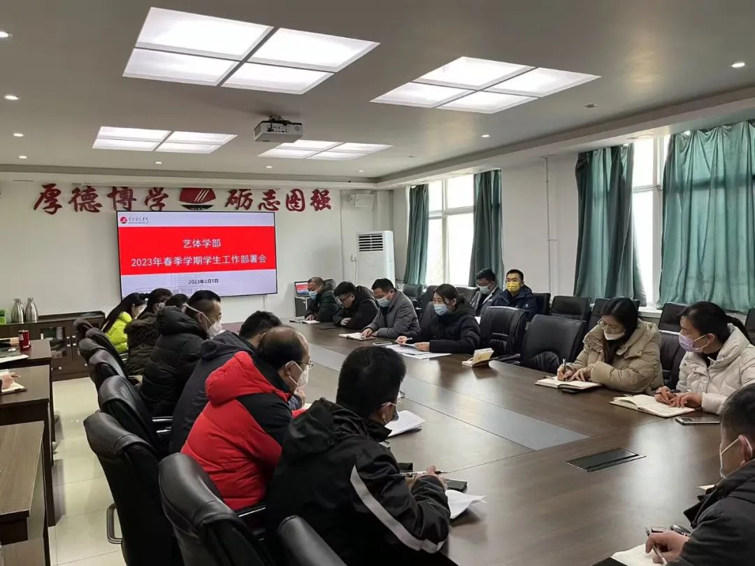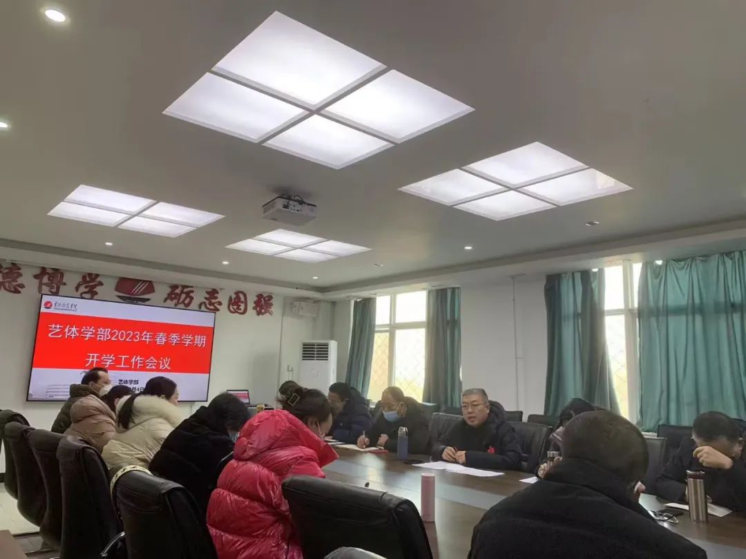 新春新气象,奋力开新篇。为迎接新学期的到来,统筹安排好年度工作,确保新学期安全、顺利、有序地进行,2月4日,艺体学部召开2023年春季学期开学工作会议。学部领导班子、各科教中心主任、三办干事参会,会议由分党委书记白云庆主持。白云庆首先传达了学校中层干部会会议精神,对学校治理体系改革、黄科院精神文化建设、数字化转型发展等方面进行了解读,结合2023年学校的改革发展思路,白云庆代表艺体学部领导班子,对艺体学...