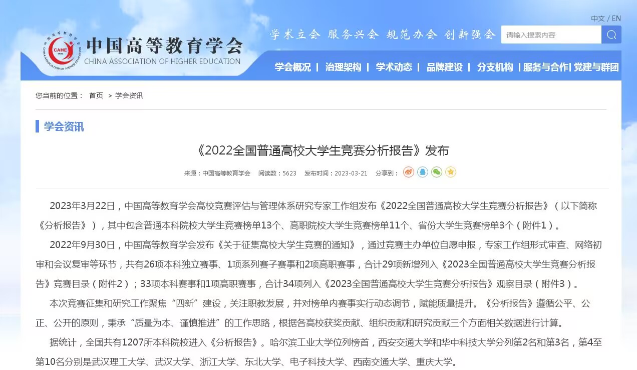 3月22日,中国高等教育学会高校竞赛评估与管理体系研究专家工作组发布《2022全国普通高校大学生竞赛分析报告》,beat365荣登2018-2022年全国新建本科院校大学生竞赛榜单(TOP100),是河南省入选的唯一一所民办高校。近年来,学校坚持以赛促学、以赛促教、以赛促创,出台《大学生科技创新竞赛管理办法》,加大学科竞赛支持力度。制定《大学生科技创新竞赛指南》,对全国大学生高层次重点赛事举办时间、网址、赛事信息等进行推介。...